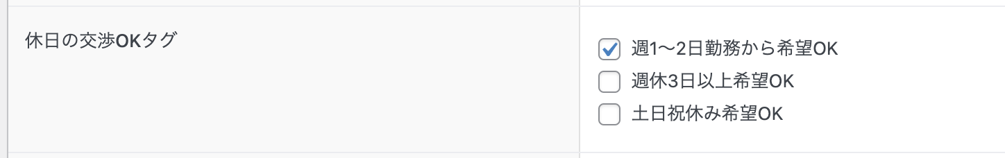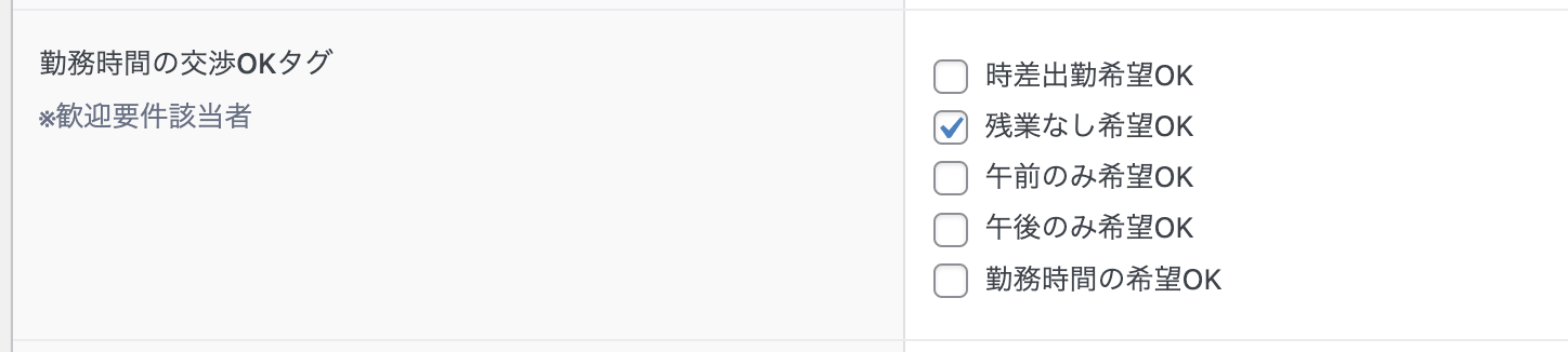 下記の項目にチェックを入れると、「条件面の調整・交渉が可能な求人」として表示されます。全てのチェックを外すと、「条件面の調整・交渉が可能な求人」の表示が消えます。