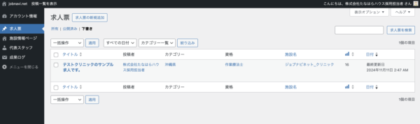 ご依頼から数日以内に「求人票」の一覧ページに非公開の状態で保存(下書き保存)されているので、ご確認をお願いいたします。